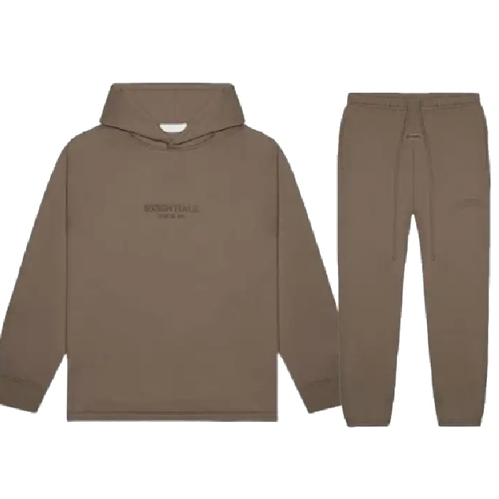 The Essential Wood Tracksuit in Brown, featuring matching hoodies and sweatpants, is a premium streetwear and athleisure essential that combines modern style, superior comfort, and high-quality craftsmanship. Part of the iconic Fear of God Essentials collection, this tracksuit is designed for individuals seeking versatile, casual outfits that balance fashion-forward streetwear with everyday comfort. Its warm brown hue offers an earthy, neutral tone that pairs seamlessly with sneakers, jackets, and other Essentials pieces, creating a cohesive, stylish ensemble.